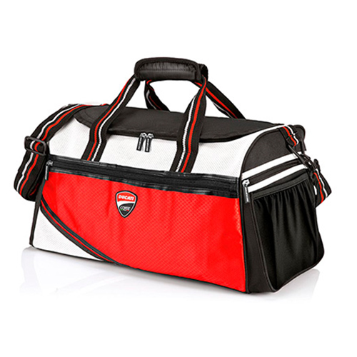 Borsone sportivo realizzato in tessuto tecnico traforato, poliestere e ripstop con tasca laterale con chiusura zip. Seconda tasca laterale con scomparto porta scarpe e tracolla regolabile e rimovibile e doppi manici con impugnatura imbottita. Dimensioni 60x25xH28 cm