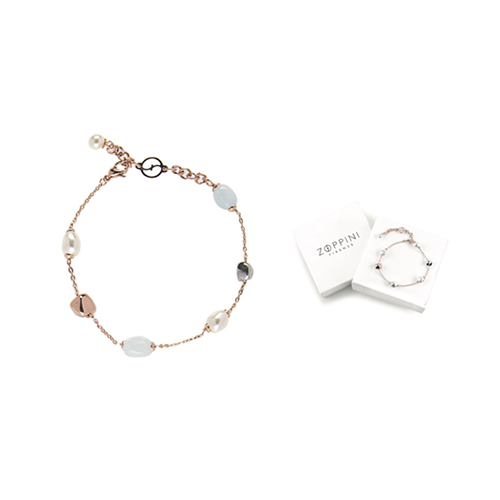 Bracciale da donna della collezione Zoppini Firenze, un gioiello caratterizzato da una preziosa galvanica in oro rosa e una catena forzatina diamantata. Il design combina armoniosamente pepite microfuse di grandi e medie dimensioni con perle barocche crema da 8 mm, perle tonde da 6 mm e pepite Milky Bollatina. Confezionato in scatola regalo personalizzata.