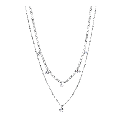 Questa meravigliosa collana a doppio filo in acciaio con cristalli della linea Symphonia ha linee morbide e femminili per una donna moderna ed esigente. Per una miglior durata del gioiello nel tempo, si consiglia di evitare lesposizione frequente o prolungata allacqua, gli sbalzi termici, lutilizzo di creme o solventi particolari che potrebbero determinare la perdita del colore dei cristalli.