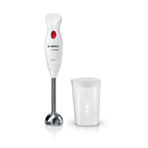 Caratteristiche: potenza 400 W. Piede del frullatore in metallo. Lame in acciaio inox. Corpo del frullatore in plastica. Impugnatura ergonomica. 1 velocità di miscelazione. Bicchiere graduato da 600 ml. Piede mixer e bicchiere lavabili in lavastoviglie.