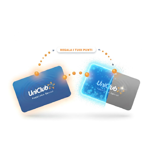I tuoi punti UniClub sono un regalo speciale da condividere! Puoi donare 500 punti dalla tua UniClub card a chi vuoi tu, semplicemente effettuando una richiesta regalo. Che tu voglia fare un regalo a un amico oppure a un familiare, è semplicissimo: effettua la richiesta e, a partire dallottavo giorno lavorativo successivo, il destinatario da te scelto riceverà un SMS di notifica: da quel momento, i punti saranno disponibili sulla card ricevente. Un modo semplice per trasformare i tuoi punti in un pensiero speciale e per permettere a qualcuno di raggiungere il suo premio preferito.