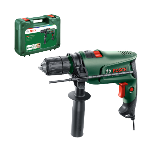 Caratteristiche: peso 1,7 kg. Giri a vuoto 50 – 3000/min. 45000 colpi/min. Foro massimo nel calcestruzzo/acciaio/legno: 12 mm/10 mm/25 mm. Potenza 600 W. Fornito in valigetta.